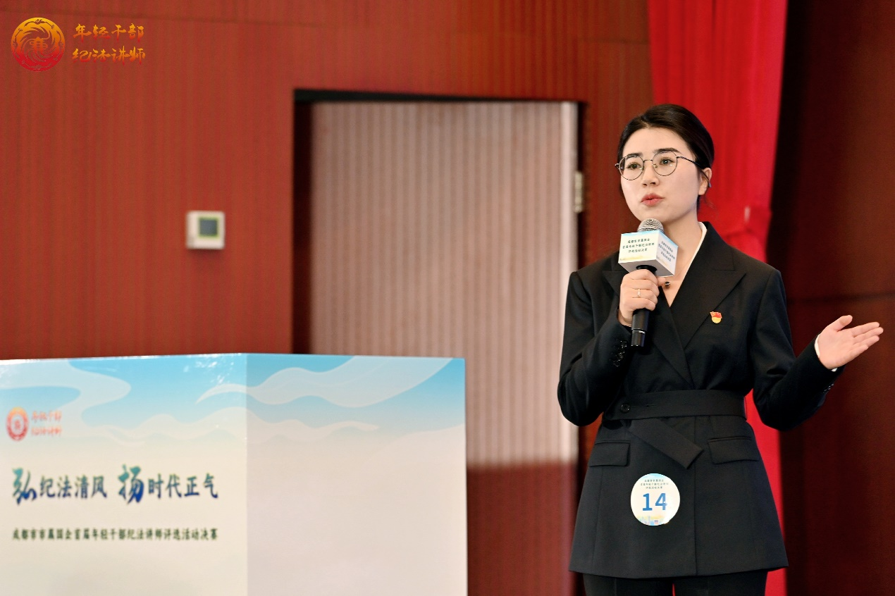 2024年12月31日,在“弘紀(jì)法清風(fēng)·揚時代正氣”成都市市屬國企首屆年輕干部紀(jì)法講師評選決賽活動中,代表成都設(shè)計咨詢集團參賽的我司青年干部林亞麗同志以“紀(jì)法科目一”為題,以自導(dǎo)自演的情景短劇為課程線索,緊密圍繞國企職工在行權(quán)履職過程中遇到的紀(jì)法難題,講了一堂生動的紀(jì)法課程。經(jīng)過激烈角逐,林亞麗同志榮獲“十佳”紀(jì)法講師稱號,并被光榮聘任為青年紀(jì)法講師巡回宣講團成員。