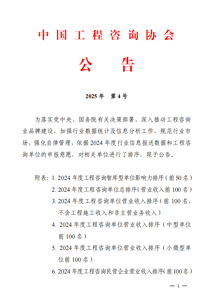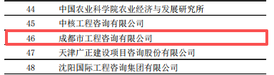近日,中國工程咨詢協(xié)會公布了“2024年度工程咨詢行業(yè)智庫型單位影響力排序(前50名)”名單。成咨公司首次入選榜單,位列第46位。