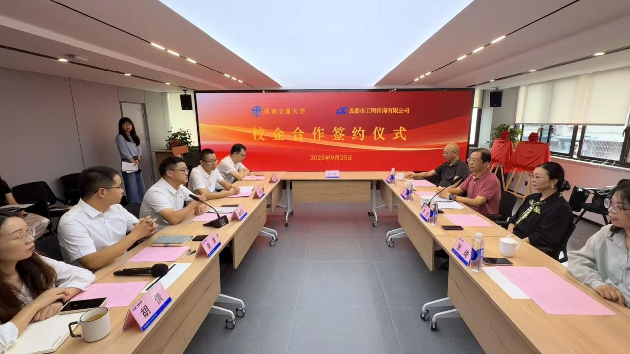 9月25日上午,公司與西南交通大學(xué)在成都市百壽路5號舉行校企合作簽約暨揭牌儀式。雙方正式簽署《校企產(chǎn)學(xué)研合作協(xié)議》,共同為“工程咨詢智能決策研究中心”與“產(chǎn)學(xué)研合作示范研究基地”揭牌,標(biāo)志著校企合作邁入深度融合新階段,助力工程咨詢行業(yè)數(shù)字化、智能化轉(zhuǎn)型升級。