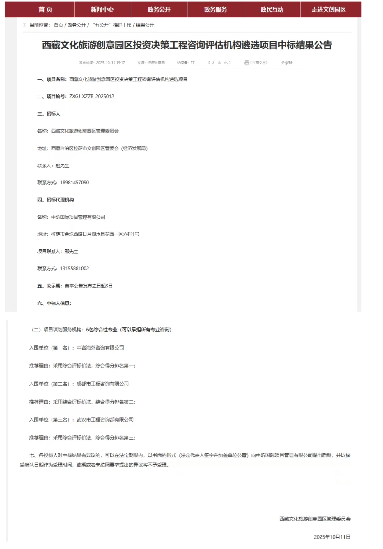 近日,成都市工程咨詢有限公司成功中標(biāo)“西藏文化旅游創(chuàng)意園區(qū)投資決策工程咨詢評估機(jī)構(gòu)遴選項(xiàng)目”,未來將作為綜合性專業(yè)咨詢機(jī)構(gòu),為園區(qū)提供覆蓋項(xiàng)目全周期的投資決策咨詢及評估服務(wù)。